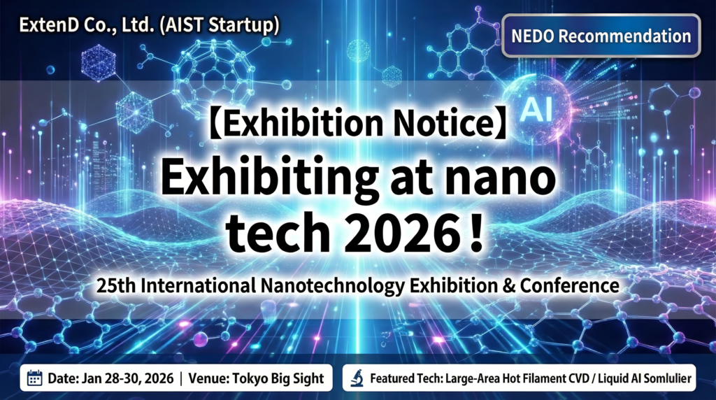 ExtenD Co., Ltd. (a startup from the National Institute of Advanced Industrial Science and Technology [AIST]) will exhibit at “nano tech 2026: The 25th International Nanotechnology Exhibition & Conference,” to be held in January 2026, upon the recommendation of the New Energy and Industrial Technology Development Organization (NEDO).